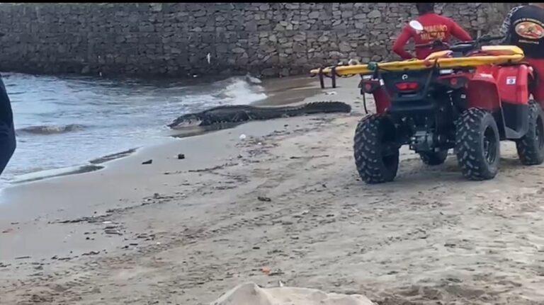 Na tarde desta segunda-feira (1º), banhistas que estavam na praia da Ponta Negra, zona oeste de Manaus, se depararam com um jacaré de
