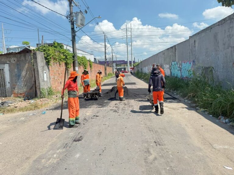 A Prefeitura de Manaus, por meio da Secretaria Municipal de Infraestrutura (Seminf), intensificou os serviços de recuperação viária na comunidade Bairro Novo, no